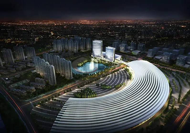 南昌绿地国际博览中心总建筑面积近45万平米室内净展览面积14万平米。博览中心内部设置配套餐饮,满足观众所需的餐饮、商业等服务功能要求。